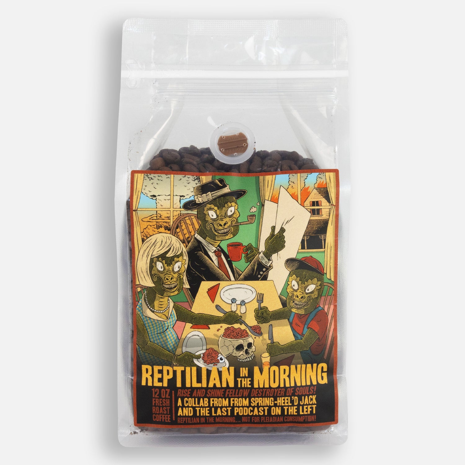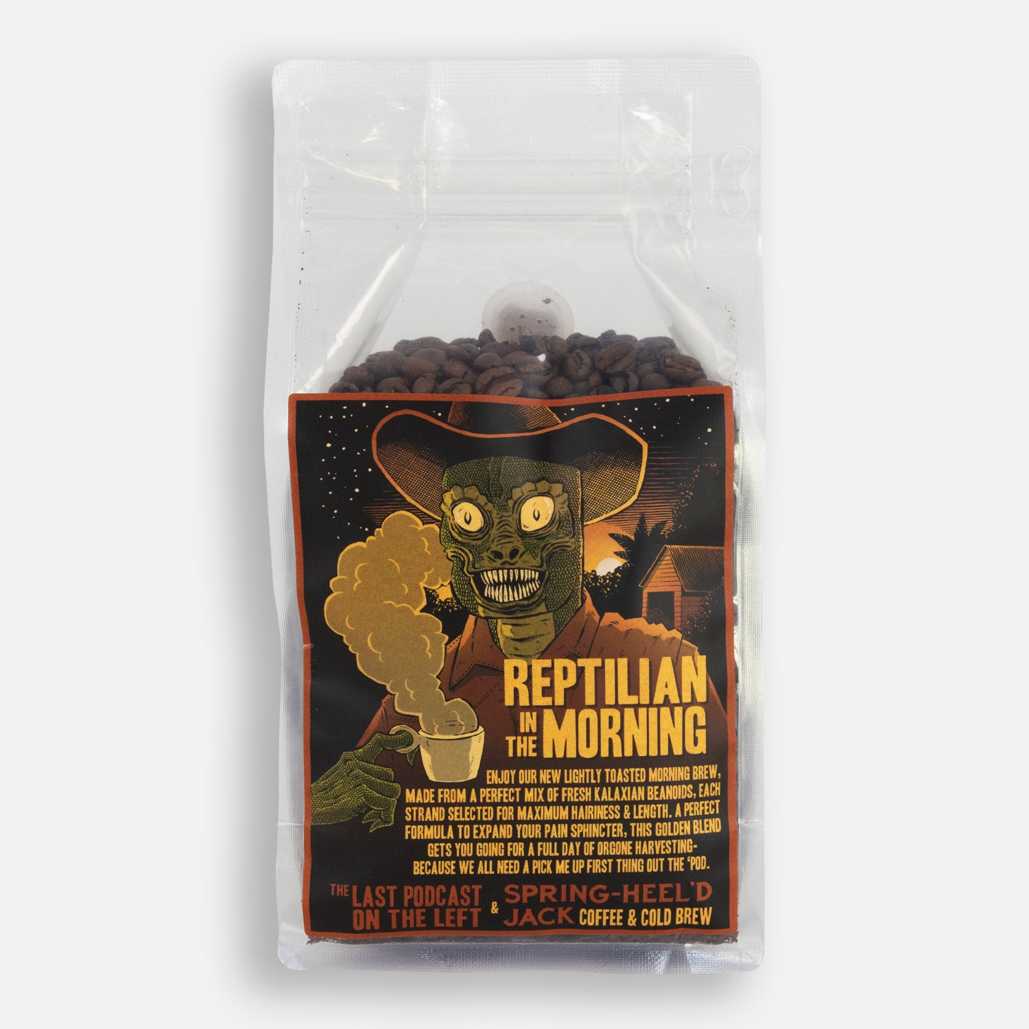 Enjoy this new lightly toasted morning brew from Last Podcast on the Left and Spring-Heel'd Jack - made from a perfect mix of fresh Kalaxian beanoids, each strand selected for maximum hairiness and length. A perfect formula to expand your pain sphincter, this golden blend gets you going for a full day of orgone harvesting - because we all need a pick-me-up first thing out the 'pod!